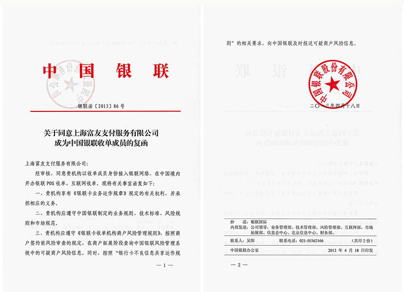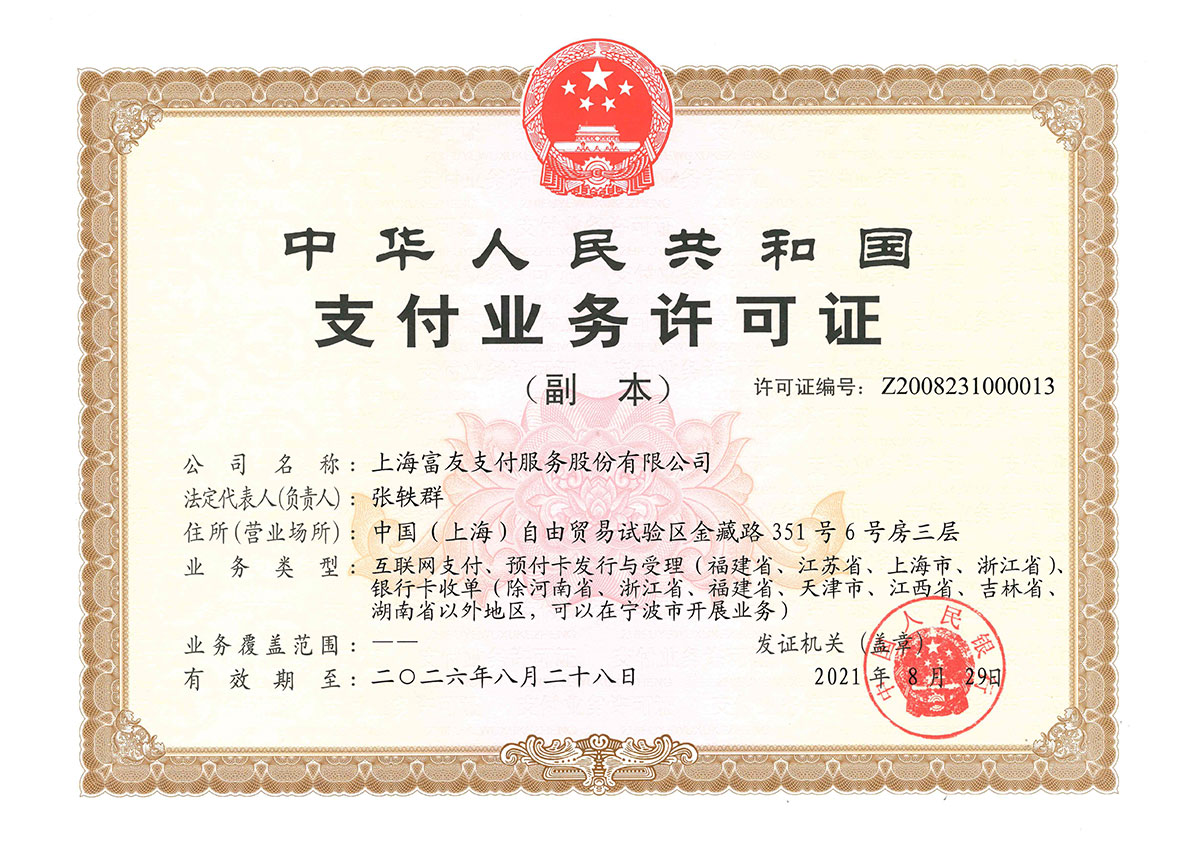 富友支付的资质证书